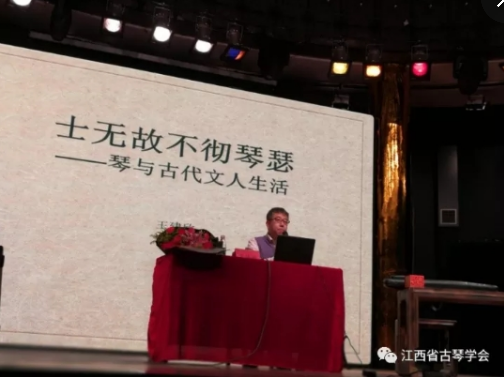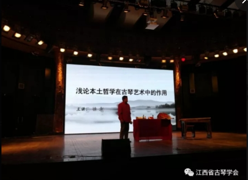 当天下午,古琴广陵派第十二代传人、国际古琴养生学会常务副会长,江西省古琴学会名誉会长徐永先生和天津音乐学院教授、音乐学系主任王建欣先生分别作了题为《浅谈本土哲学在古琴艺术中的应用》及《士无故不撤琴瑟——古代文人生活》的精彩讲座。两位专家分别围绕如何欣赏古典乐曲、琴曲的释义和分析、怎样在琴曲的表现中融入人文情感、抒发情怀,琴与古代文人生活,琴与养生等方面全方位、多角度展现琴乐的魅力,并利用理论与实践相结合的形式,通过对琴曲的分析和展现剖析琴曲的意境,从而传递给大家“静以修身、淡以养性”、“宁静以致远,淡泊以明志”的思想,指出琴人必须要有修为,抚琴时要体态端庄、心清气正,琴曲表现要刚而不躁,疾而不促,缓而不滞,通过琴与古人生活的生动解析,揭秘“古人的音乐观”,讲述古琴作为中国古代文人修身养性、抒情写意的工具,和古代的历史背景有着极其密切的联系,同时鼓励大家多学习,特别是要学习古人的人生观和音乐观,学会更好地演奏和欣赏中国古乐。讲座历时3个多小时没有间断,内容引发了听众的共鸣,现场座无虚席,掌声不断。