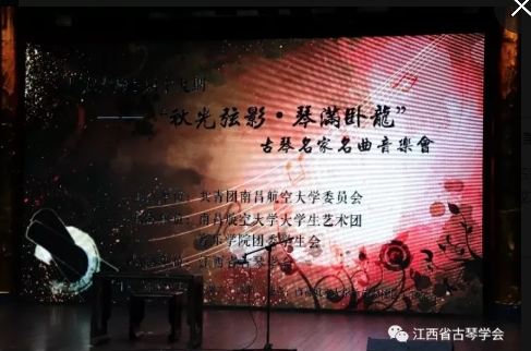 由共青团南昌航空大学委员会主办,南昌航空大学大学生艺术团、音乐学院团委学生会承办,江西省古琴学会协办的“秋光弦影、琴满卧龙”古琴名家名曲音乐会及音乐讲座于11月4日在南昌航空大学音乐厅隆重举办。
