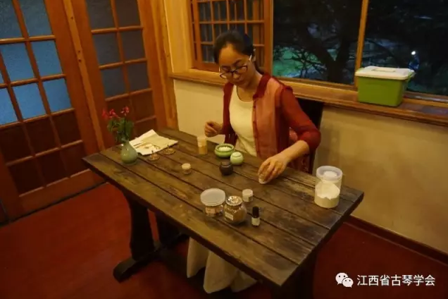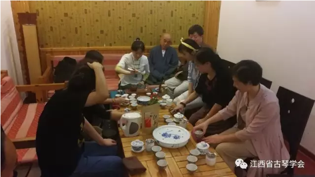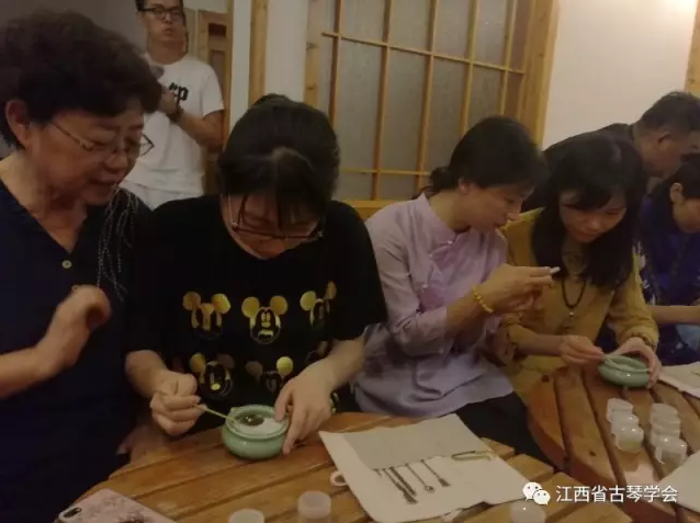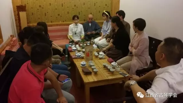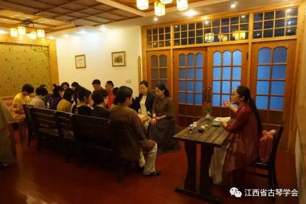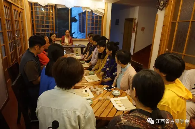 首先,江西省古琴学会理事、茶艺师郝小谊,为大家带来了一堂别开生面的茶道课。课上,她教会大家分辨茶、泡茶、讲解茶的储存方式以及如何品味手中的茶,她还为大家解析了一直以来很多茶友比较疑惑的问题:茶是碱性还是酸性的?她用自己的亲身经历告诉大家,不同茶叶的酸碱度有所不同,绿茶酸性最弱,红茶和乌龙茶酸性相对强些,但都为弱酸性,说明茶汤酸碱度与茶叶种类和制作方法有关。同时,不同嫩度的茶叶酸碱度也不同,芽茶酸性相对比叶茶弱,即茶叶越嫩,酸性越弱,茶叶越老,酸性越强。而后,她专门为大家泡上了一壶暖暖的古树红茶,还温馨提醒大家不要空腹饮茶,特别是对于有胃疾的朋友,切忌引用过久闷着的茶,尤其是隔夜茶。一堂茶道课让琴友们普及了对茶的知识,领会了“茶”字拆解就是人在草木间的涵义,更加懂得人要多亲近大自然,要用泡茶的心境和喝茶的品味去享受、回味多彩人生的真谛。