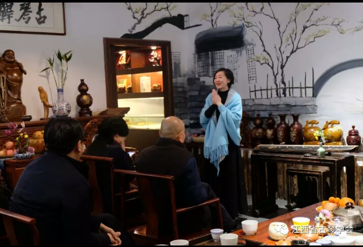 此次江西省古琴学会利用周末的时间把2、3月份的生日雅集活动安排在位于红谷滩水城艺术村内的古琴驿栈中进行。驿栈闹中取静,像是闹市中的一处世外桃源,无论从室内布置还是从驿栈主人的待人接物中都能感受到恬静和舒适,驿栈主人宋妍是省古琴学会常务理事,山东人,朴实善良,热情大方,常常着一袭素衣抚琴、泡茶。