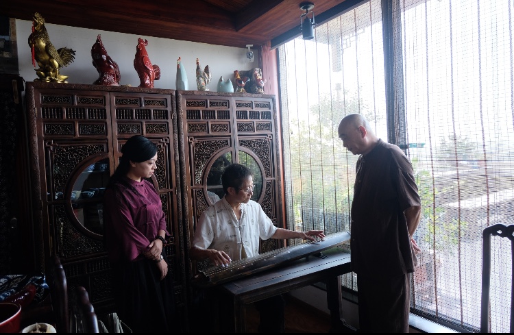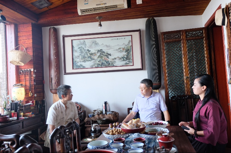 近日,琴界老前辈、香港著名古琴演奏家、古琴收藏家、南音和甲骨文研究专家唐健垣先生莅临江西省古琴学会进行琴学交流,孙刚先生与江西省古琴学会会长、省级非物质文化遗产代表性传承人海月女士热情接待了唐健垣先生。在省古琴学会,海月会长向唐健垣先生详细介绍了江西古琴的悠久历史、传承现状以及艺术特色,受到了唐健垣先生高度认同。