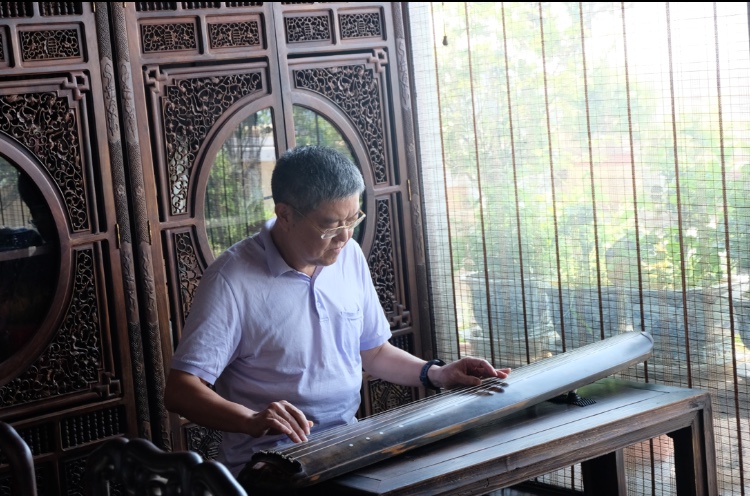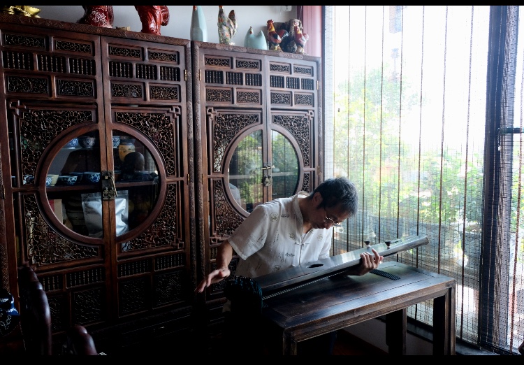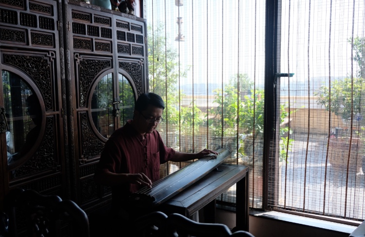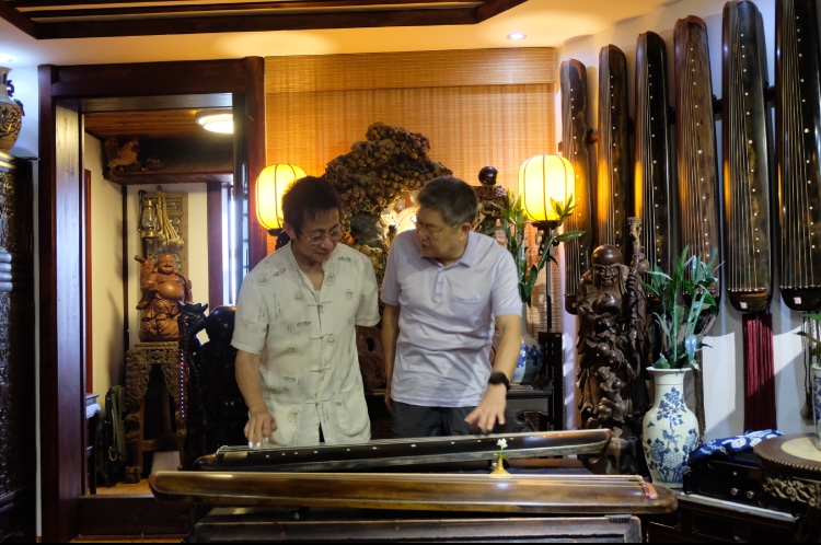 在酉民琴坊,孙刚先生介绍说,江西不但是诸多古琴名曲的发源地,斫琴艺术亦是底蕴深厚。酉民琴坊坊主杨酉民先生斫制的高端收藏级古琴引起了唐健垣先生极大的兴趣,并抚琴数曲,琴尽曲意,相得益彰!唐健垣先生认为酉民琴坊斫制之琴形制厚重大气,音韵细腻悠长,润而不嘈,古风古韵,颇具唐琴风范,殊为难得!