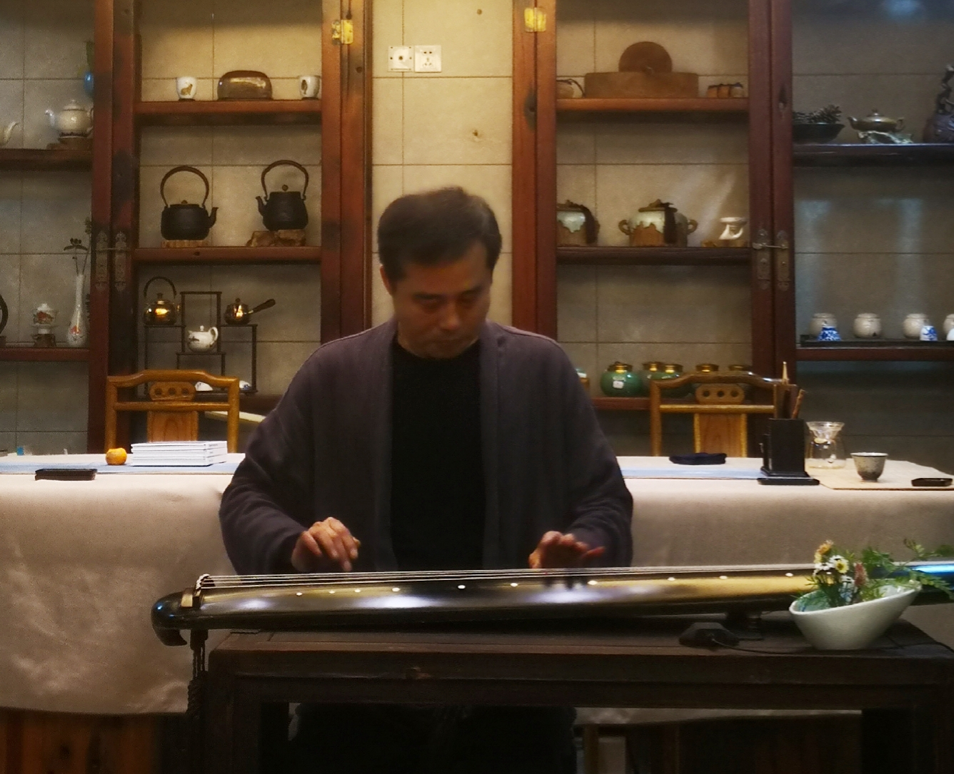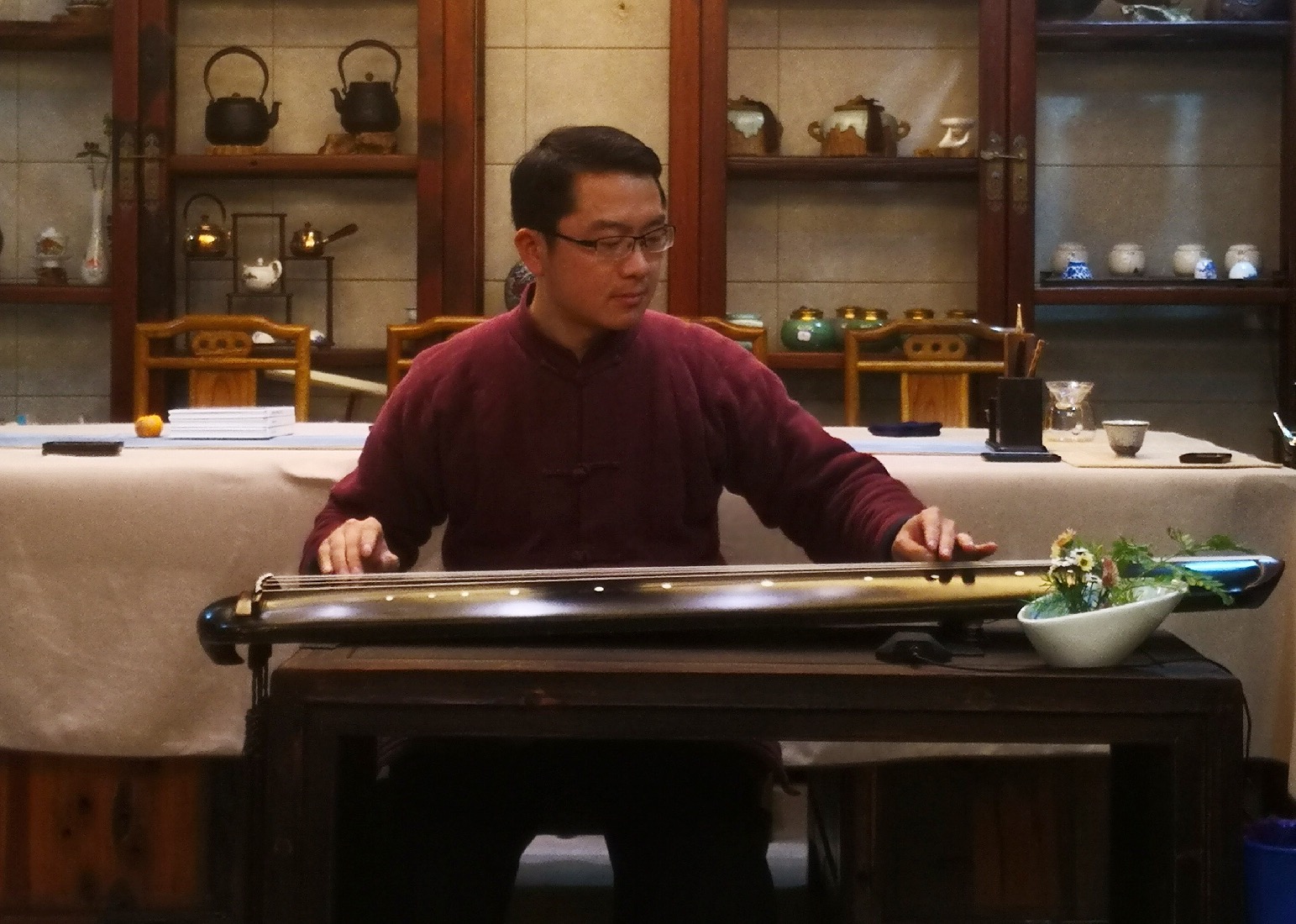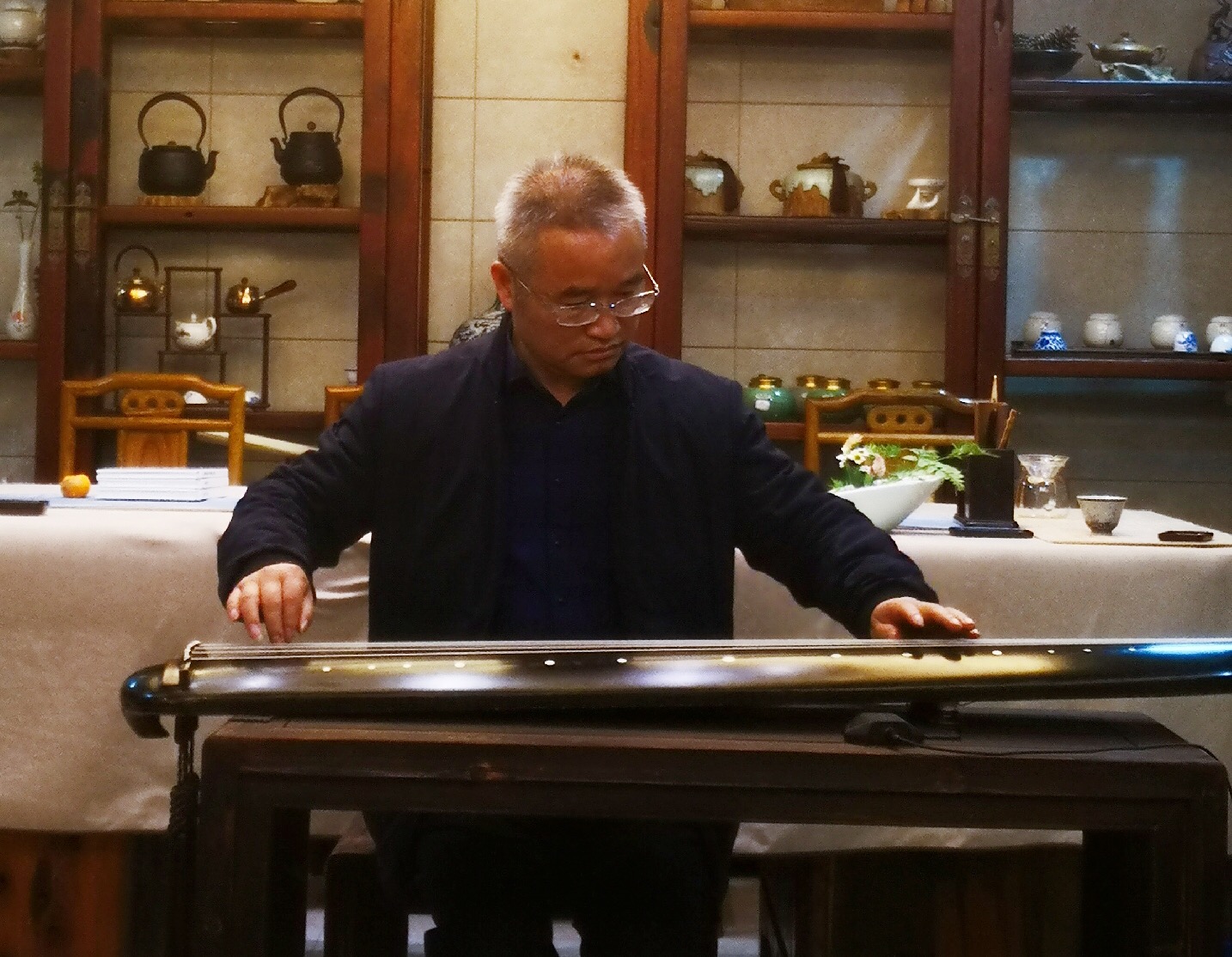 当晚,大家相聚在素雅清净的茹雅阁,抚琴品茗,交流心得。海月会长对鹰潭的古琴艺术传承表示极大的认可和支持,并鼓励大家再接再厉,在研习梅氏广陵琴学的道路上不忘初心,持之以恒。