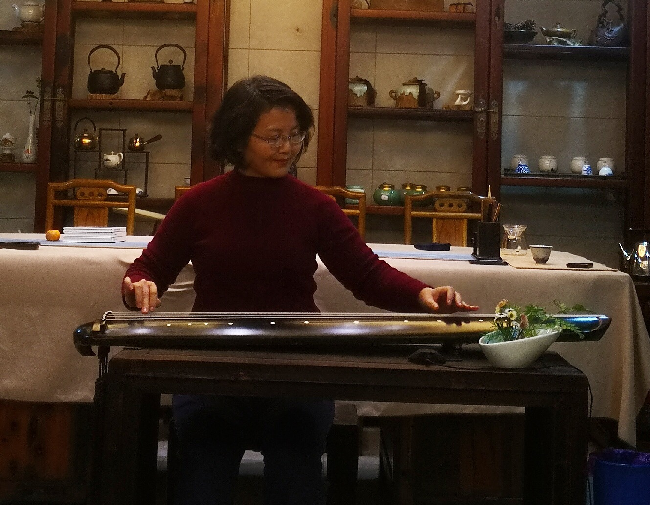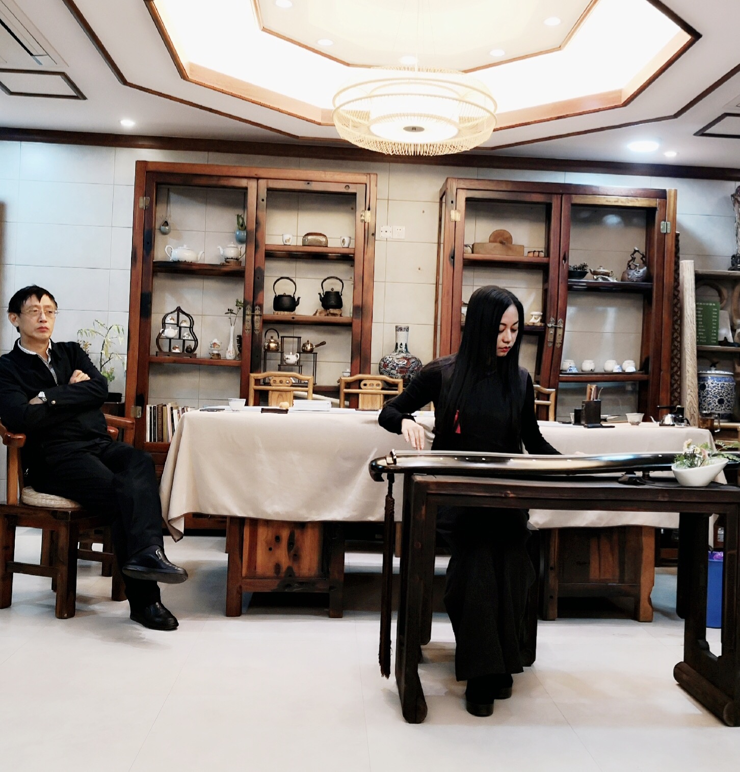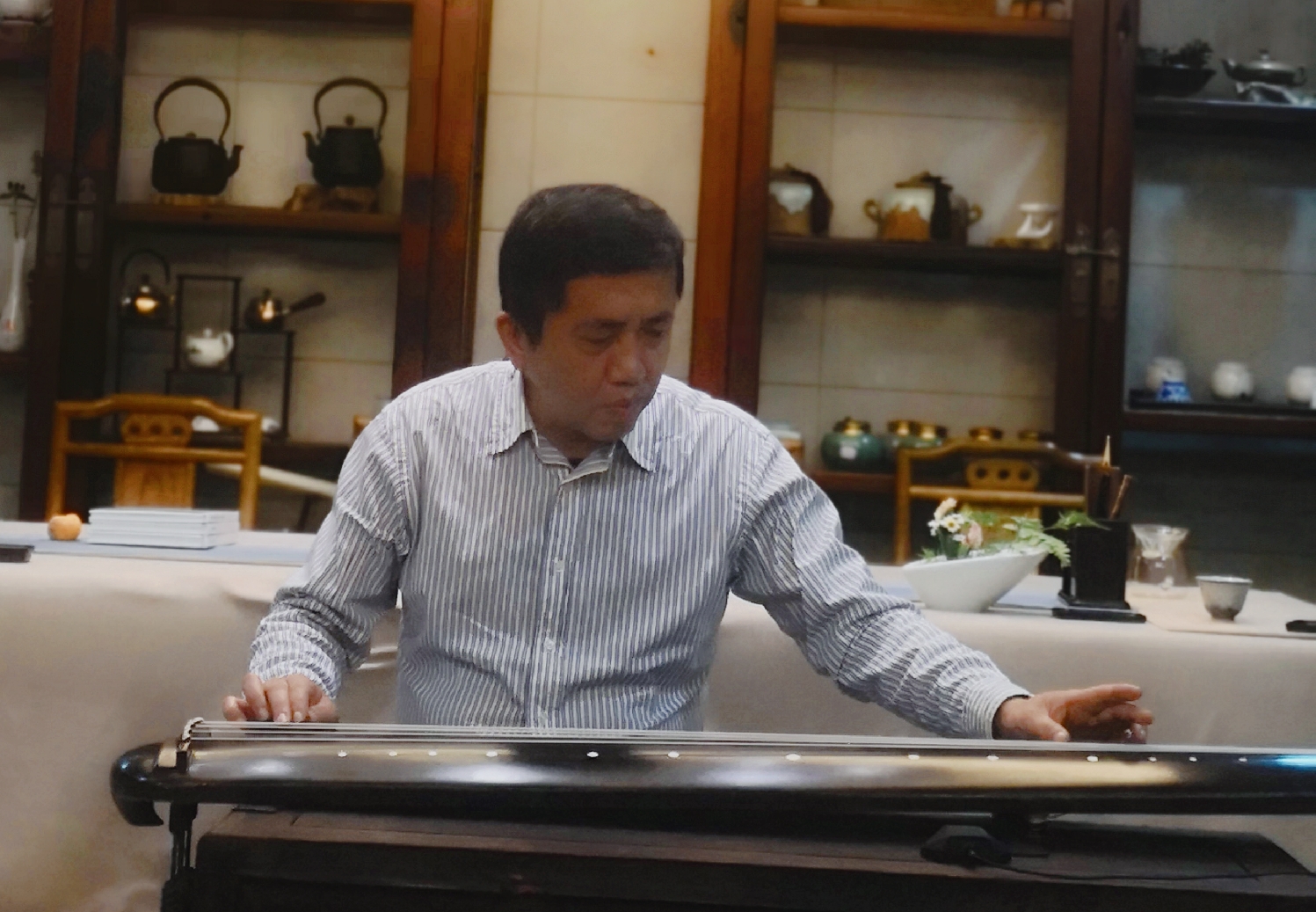 当晚,大家相聚在素雅清净的茹雅阁,抚琴品茗,交流心得。海月会长对鹰潭的古琴艺术传承表示极大的认可和支持,并鼓励大家再接再厉,在研习梅氏广陵琴学的道路上不忘初心,持之以恒。