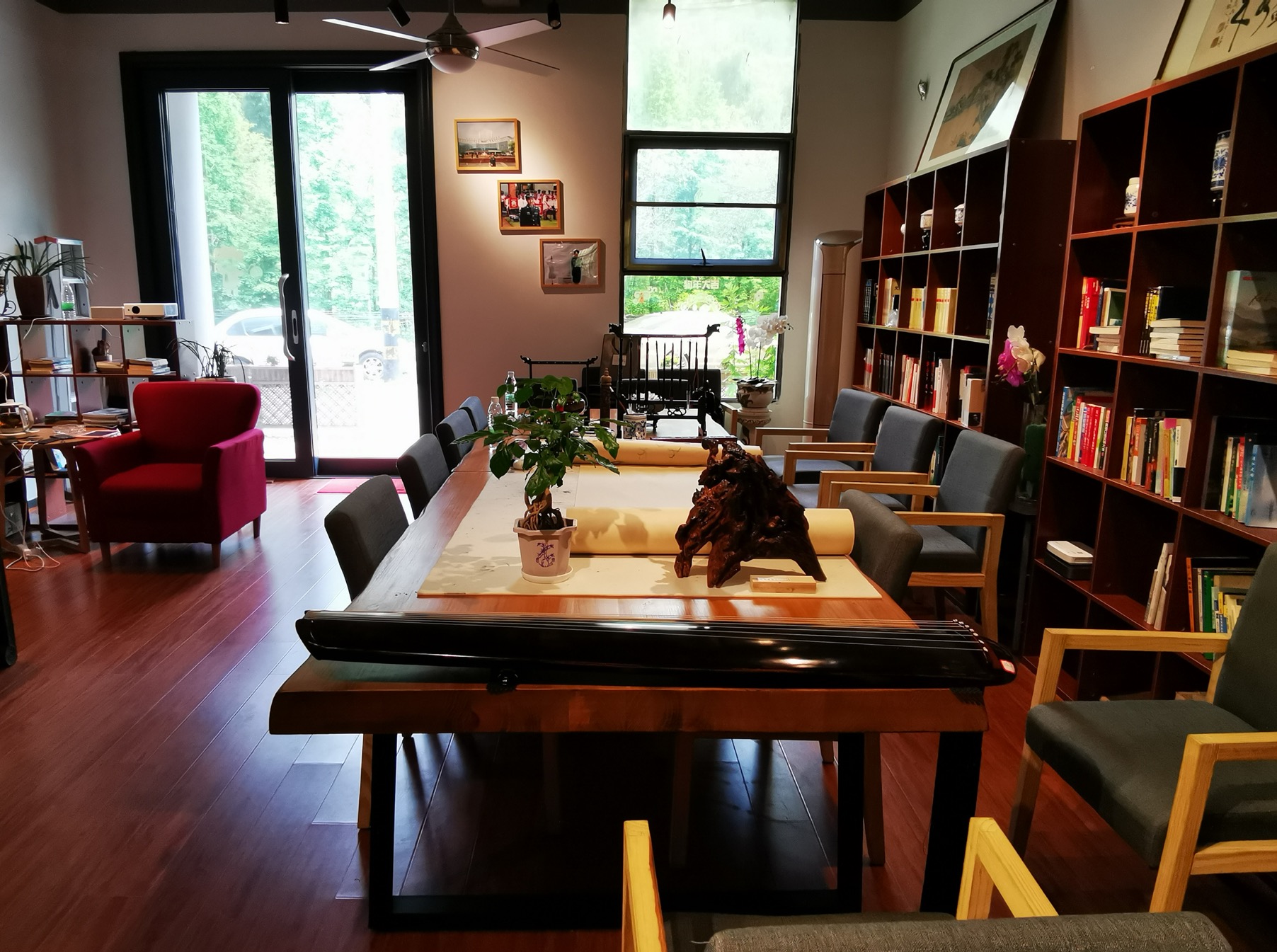 据悉,秋泽苑主人因对传统文化夙有情怀,故工作之暇择地而隐,构民宿以安身利人,笑傲山水之间。秋泽苑设计布置极为典雅自然,充满古典气息。古人云,君子之座,必左琴而右书。秋泽苑图书满壁,素琴在案,更有庭前绵绵青山、屋后潺潺流泉,堪称可游可居、颐养性情之妙境。良辰佳日,三五胜友相会于斯,不亦乐乎。