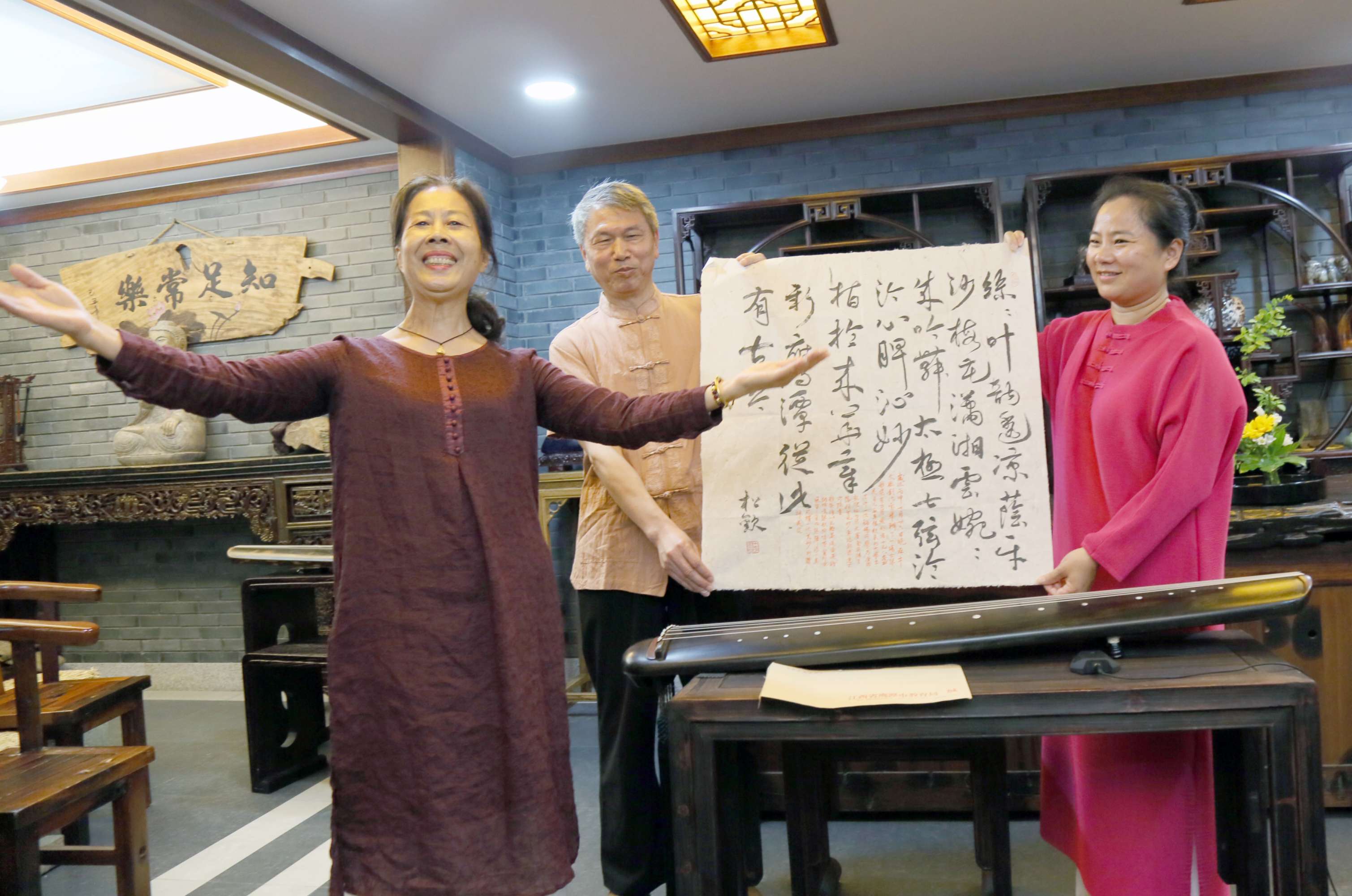 揭牌仪式结束后,琴友们特别举办了专场古琴雅集,汇报展示鹰潭古琴艺术传承的成果。一首首带有鲜明梅氏广陵派古琴特色的琴曲从琴友们的手下逐一呈现,展现出鹰潭古琴传承的扎实与纯正。琴友们诗词唱和、翰墨传情,表现出鹰潭琴友们博雅的传统文化修养和丰赡的琴外功夫。我们坚信,在习主席大力提倡全面复兴中华优秀传统文化的时代环境下,江西古琴艺术非物质文化遗产鹰潭传承基地和一脉琴社鹰潭分社立足于鹰潭这片灵秀之地,定能顺势而为,为江西古琴艺术的传承弘扬做出应有的贡献。