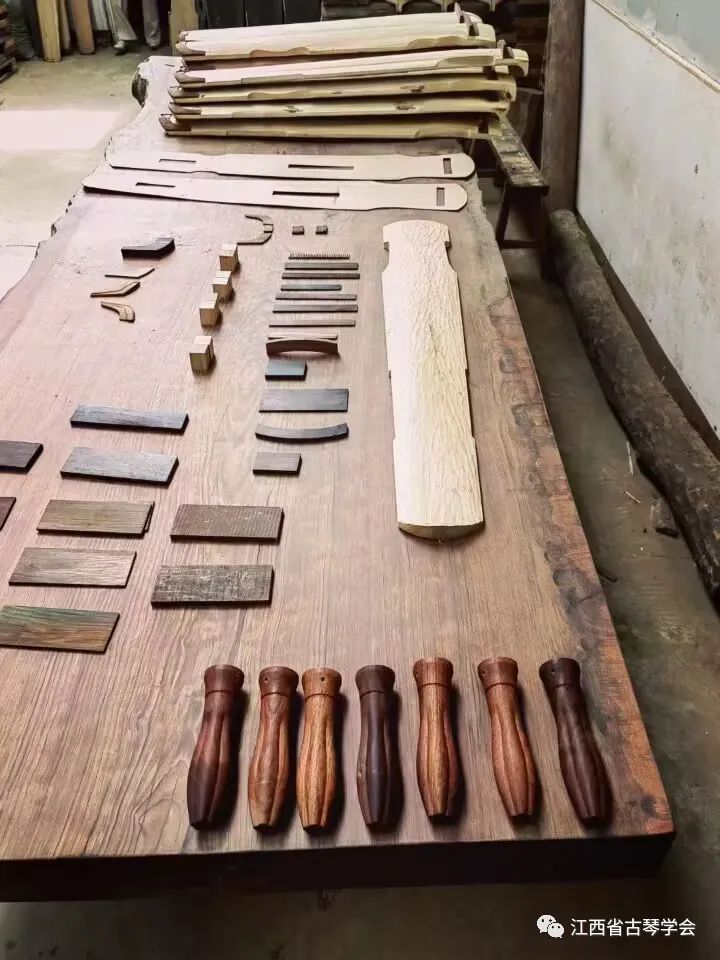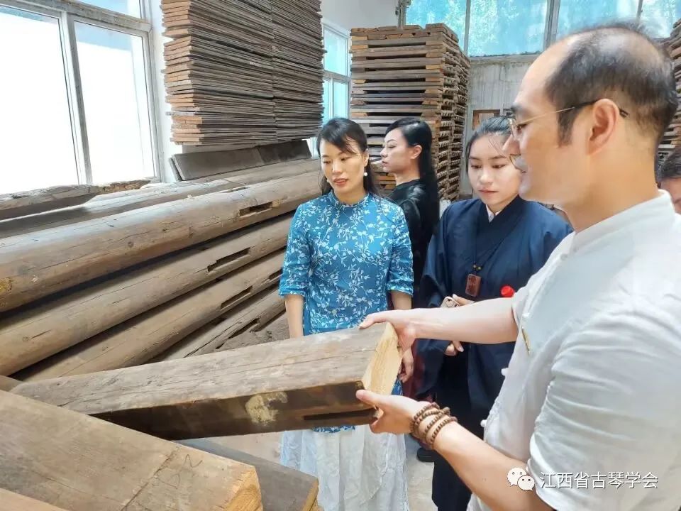 吴寒先生带领社员们一一走进不同工序的斫琴工作室,从选材到琴胚制作、裹布擦漆、灰胎打磨工艺等等,吴寒先生皆如数家珍,为社员们娓娓道来。社员们于惊叹敬佩之时,且收获良多。一床琴,从木头到成品,经历300多道工序,最少几年以上的光阴、经由匠人的细心斫制,最后呈现世人眼前的,已不仅仅只是一件乐器,更饱含匠人的心血、光阴的洗礼、乃至之后文人墨客于其上付诸的笔墨情怀,皆为其提升了传世价值。