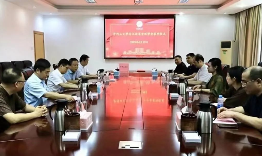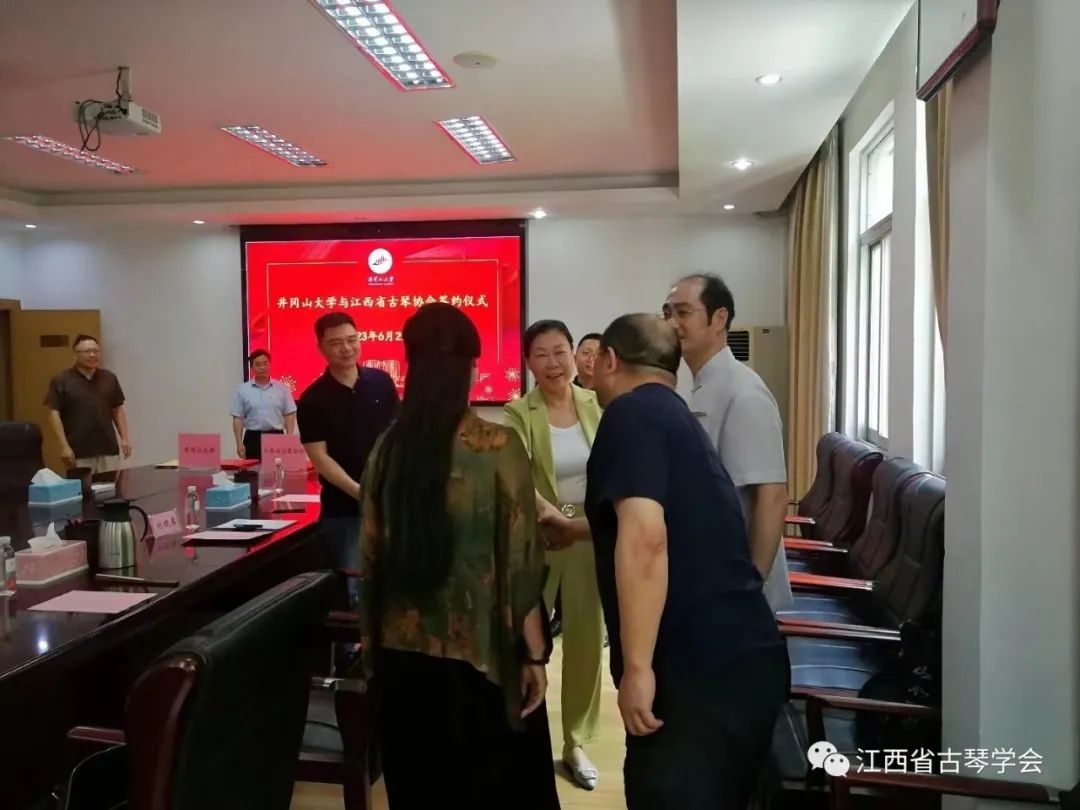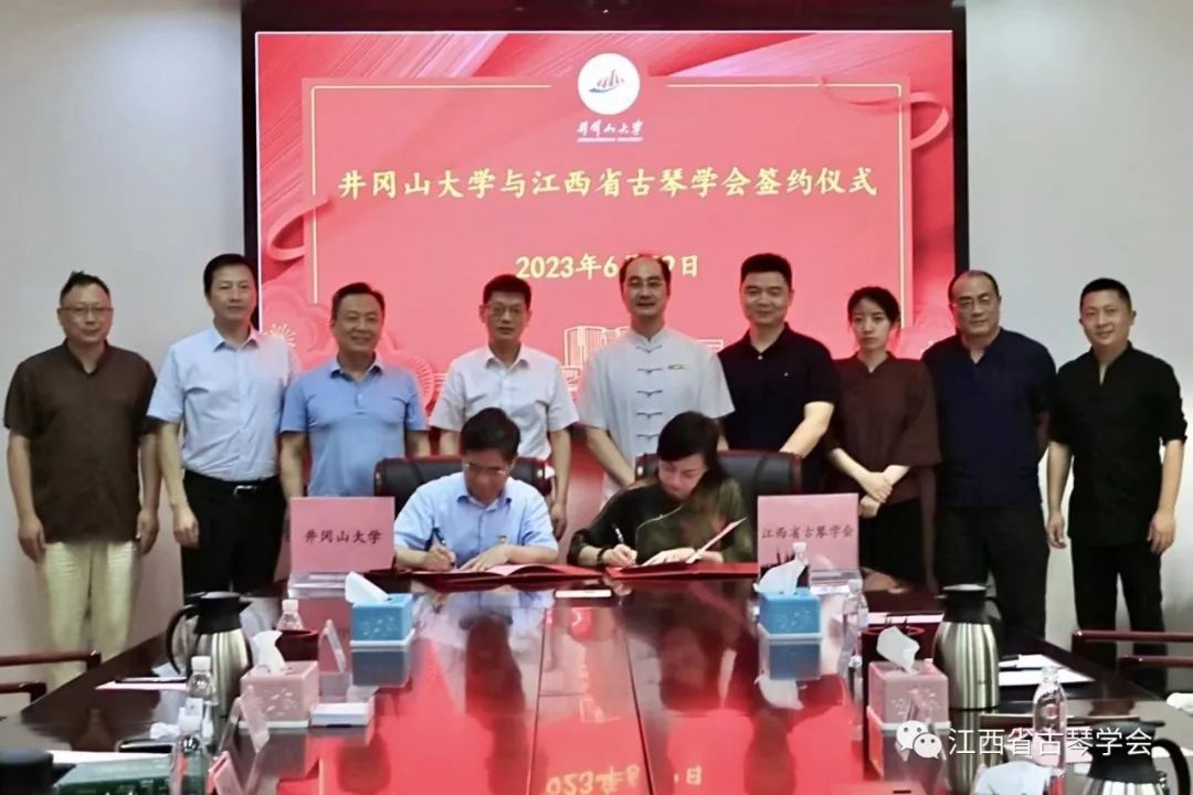在这样的背景之下,建立高校与文化社团组织联合培养人才的新机制,6月29日下午,井冈山大学与江西省古琴学会举行共建古琴文献研究所签约仪式。井冈山大学党委副书记、校长罗旭彪与中国传统文化促进会古琴文化艺术工作委员会执行主任吴寒出席并讲话。党委常委、纪委书记史胜平出席,党委常委、副校长肖宜安与省非物质文化遗产项目古琴艺术传承人、江西省古琴学会会长海月分别代表双方签订了协议,中国传统文化促进会古琴文化艺术工作委员会副主任刘晓睿和江西省古琴学会副会长、任职于省文化和旅游研究院干部赵梦瑶等相关成员出席。