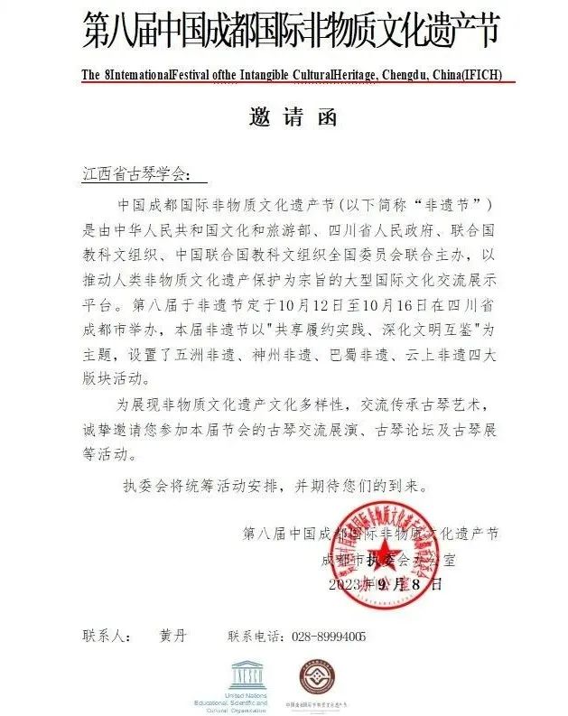 由联合国教科文组织、中华人民共和国文化和旅游部、四川省人民政府、中国联合国教科文组织全国委员会共同主办,成都市人民政府、四川省文化和旅游厅、中国非物质文化遗产保护中心、联合国教科文组织亚太地区非物质文化遗产国际培训中心、文化和旅游部民族民间文艺发展中心承办的第八届中国成都国际非物质文化遗产节将于2023年10月12日至16日在中国四川省成都市举行!