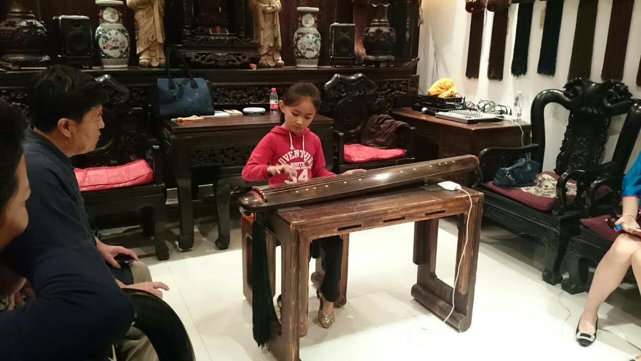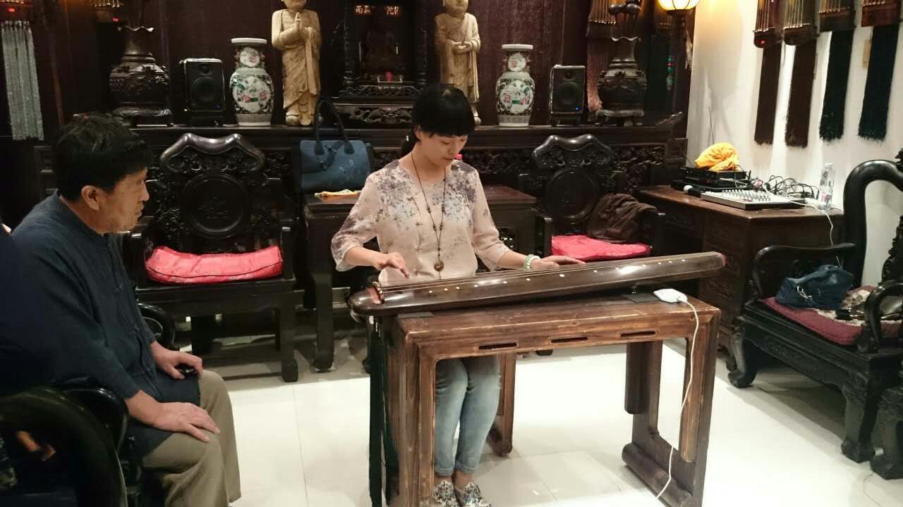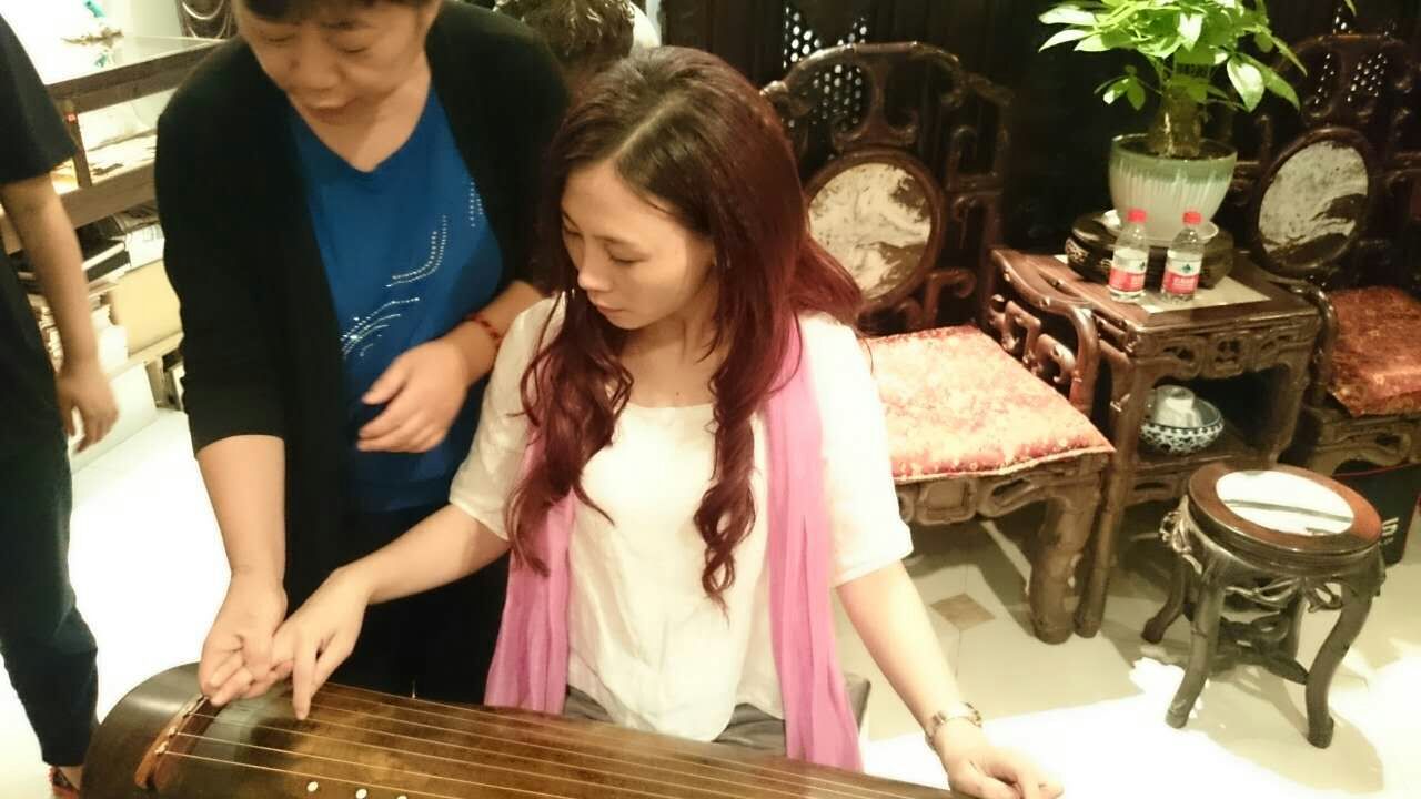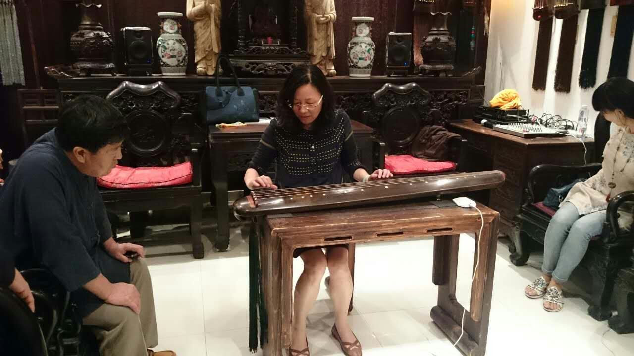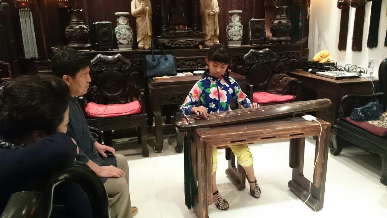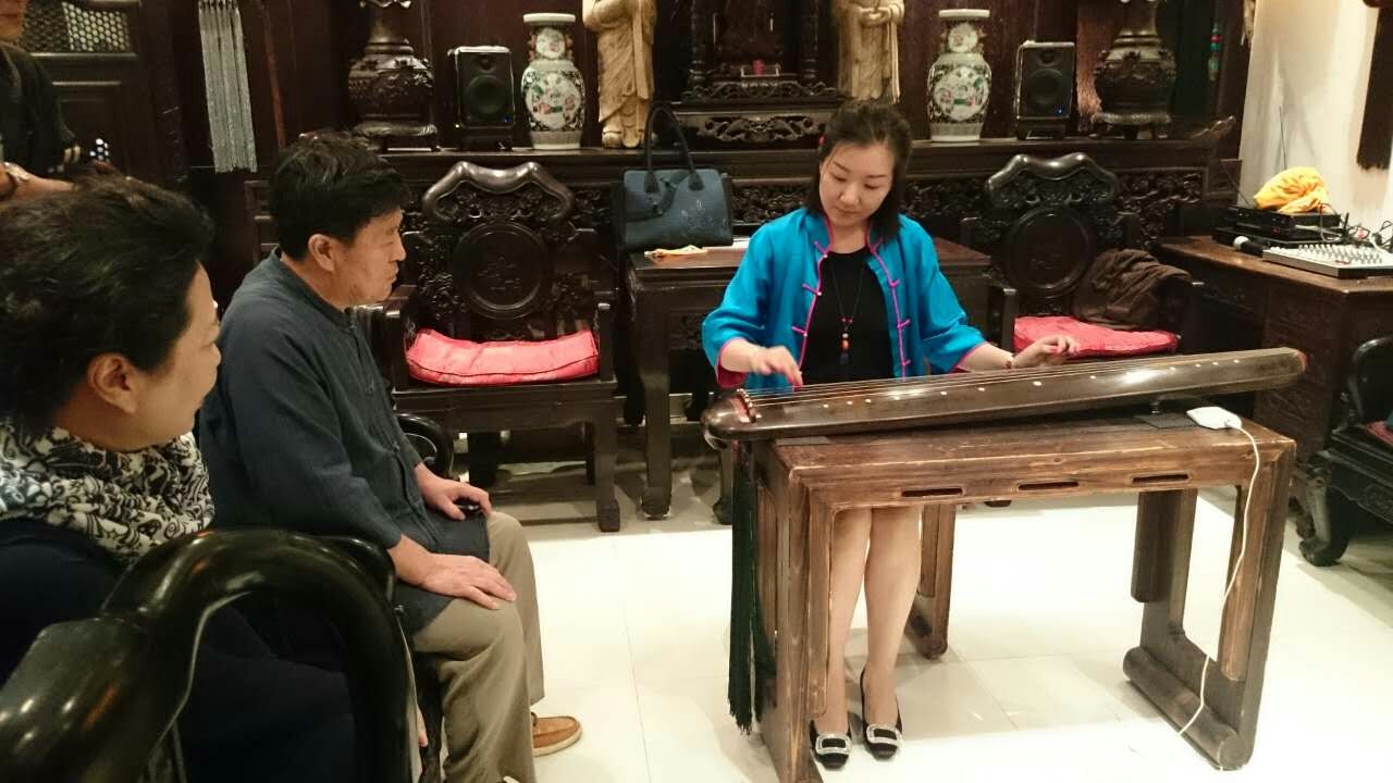 女企姐妹在江南古韵琴馆感受高雅艺术的熏陶