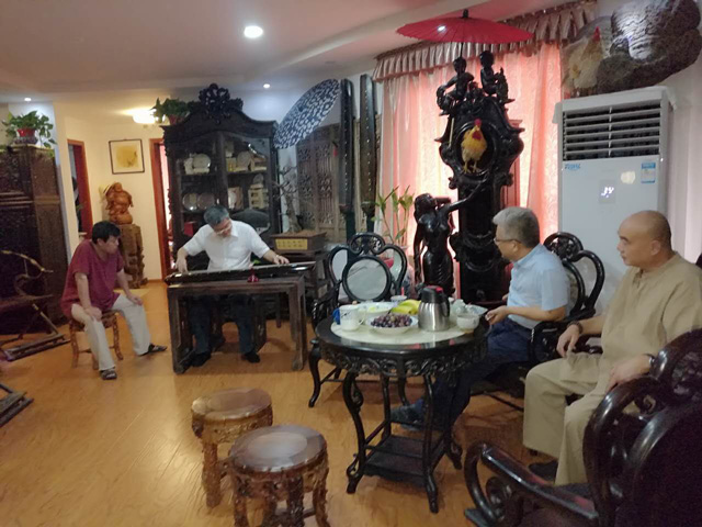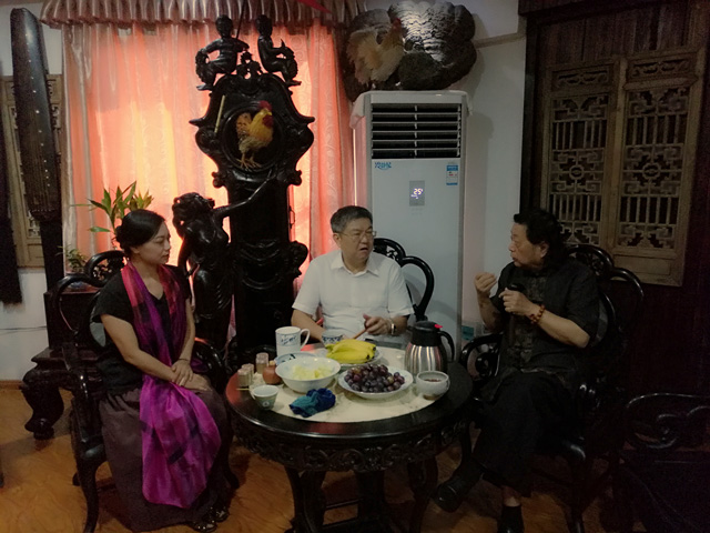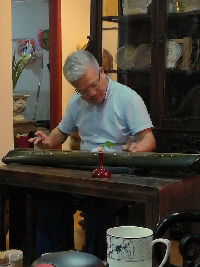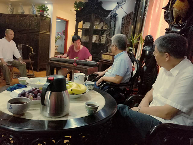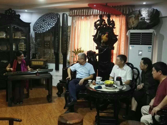 琴界德高望重,著名泛川派琴家,武汉音乐学院教授丁承运先生做客江西省古琴学会及酉民古琴工作室,与其就坐的有著名广陵梅氏传人徐永先生和其弟子原省长孙刚先生,本次古琴大赛组委会主任,华东交通大学副书记汪立夏先生,景德镇陶瓷大学书记郭杰忠先生,江西省古琴学会会长海月女士,副秘书长徐金林先生,酉民古琴工作室杨先生。大家在畅谈之中,从传统古琴流派到古琴的发展,再到琴曲交流,进行了深入探讨。丁承运先生的深入浅出讲话及精湛的古琴演奏打动了在坐的知音,对杨氏的古琴感觉弹起来轻松脆滑很顺手,而徐永先生与海月女士所抚梅氏广陵名曲更是大开眼界。此次雅聚给大家留下了深刻,美好的回忆。