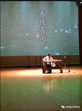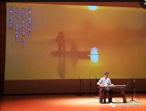 学会名誉会长、古琴广陵派第十二代传人徐永老师演奏的压轴曲目《秋夜读易》深受观众喜爱。《秋夜读易》,明代古曲,描写月明风轻的美好夜晚,古代的学子们摇头晃脑诵读《易经》的场景,乐曲三段把学子们诵读经书由低声吟诵到高潮段落的高声朗诵表现得淋漓尽致,耐人寻味。整首琴曲指法轻柔,琴音恬静、悠远、跌宕、自由,琴曲渗透儒家思想,听后既有平静安详之宁静,又有向上、奋进之动力。