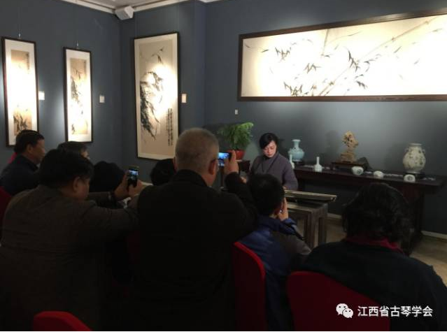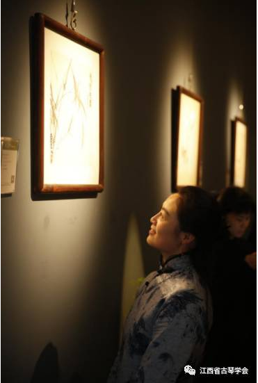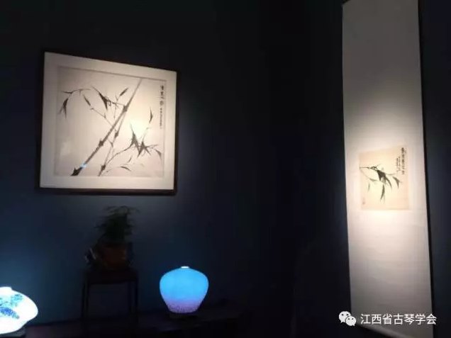 徐永先生此次展出作品三十余幅,他笔下的墨竹,落笔重似高山坠石,着墨轻如风拂细柳,润燥相生,黑白相间。其枝上鸣蝉、花间飞蜂跃然纸上,栩栩如生。其潇湘玉笋,月下修影,俱清雅淡远,饶有古风。现场观众饶有兴致地赏画听琴,纷纷被现场清雅、淡雅、文雅、拙雅、古雅的气氛感染、打动!