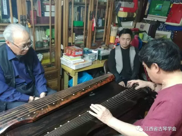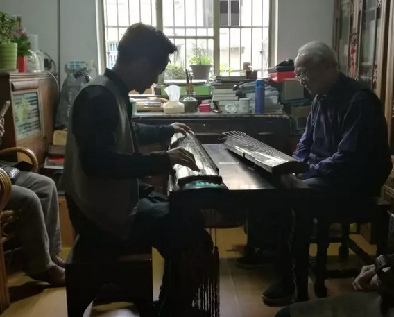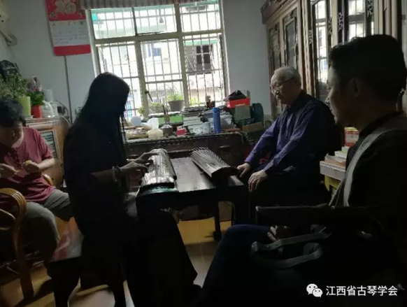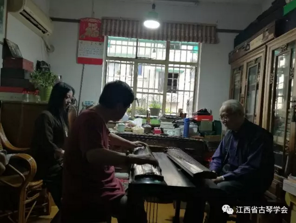 南上觅知音,在得知著名琴家刘赤诚先生移居余杭多年,学会一行专程叩门拜访。刘老先生神采奕奕,和蔼可亲,年近九旬,中气十足,特别是弹琴时指下生风,呤猱绰注大起大落,跌宕起伏,荡气回肠,将山东民间小调韵味,表现得淋漓尽致,耐人寻味。