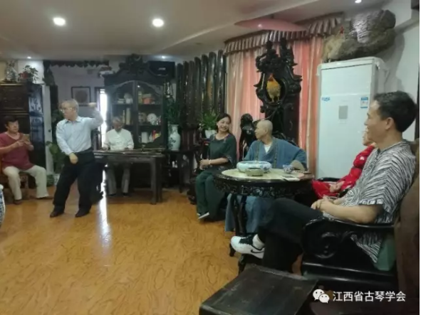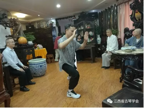 有朋自远方来不亦说乎!近日,江西省古琴学会和酉民古琴工作室来了几位“武林高手”,他们身着中式传统服装,个个充满着侠士的正气力量,此行南昌是专程拜访江西省古琴学会名誉会长徐永先生及学会会长海月女士。前来造访的几位朋友分别是深圳市古琴文化研究会秘书长、世界功夫武术段位制总会副会长、深圳市“非物质文化遗产”评审专家陈雁杨教授,中国武术段位考评员、深圳市非遗评审专家、深圳市武术技术研究会副会长田桂菊教授,深圳市精武体育会会长、山东临清肘捶第六代传人方向东先生,鹰潭市文联刘正良书记陪同,江西省佛教协会教务长养空法师也来到现场。大家交流古琴与武术,古琴与养生,武术与养生,传统文化的传承与弘扬,古琴、武术及斫琴工艺等话题,比武、抚琴,悠哉、乐哉!