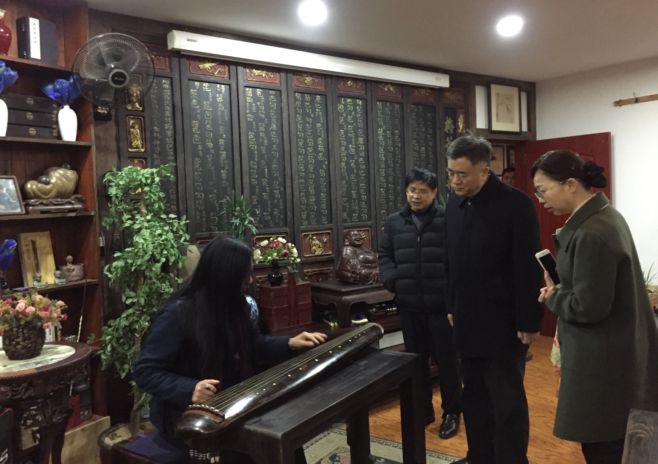 1月13日,是中国传统节日腊八节,江西省人大常委会党组副书记、副主任朱虹走进江西省古琴学会。江西省古琴学会会长、省级非物质文化遗产代表性项目江西古琴艺术传承人海月热情接待了朱虹一行。海月会长向朱虹详细介绍了江西省古琴学会的工作情况和江西古琴艺术的发展现状。朱虹对江西省古琴学会在引领江西古琴艺术的发展方面做出的努力和取得的成绩表示充分的肯定。