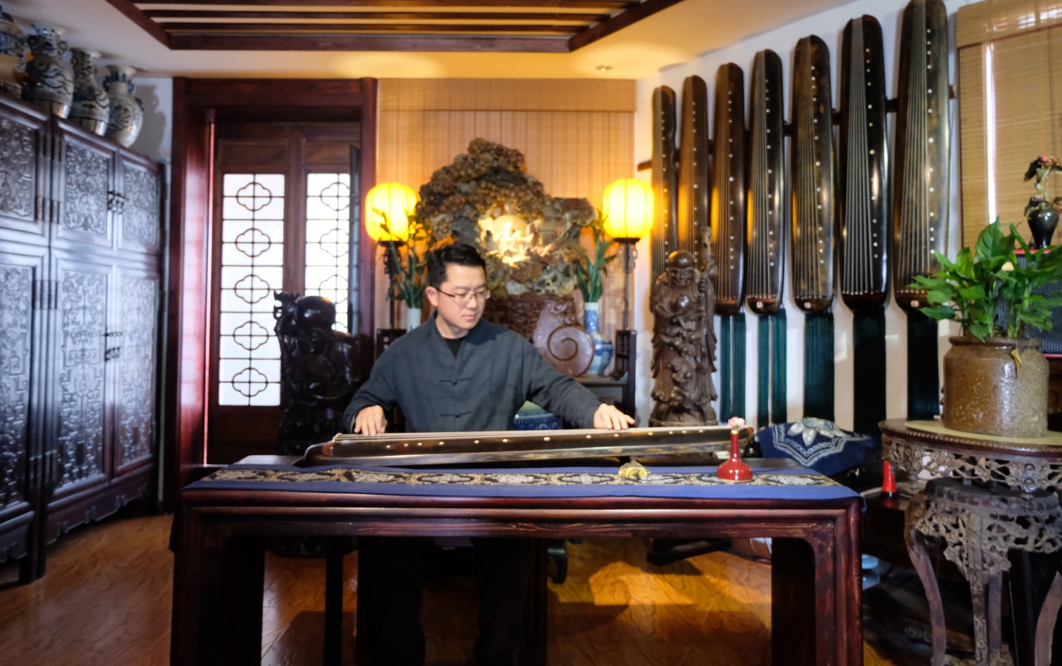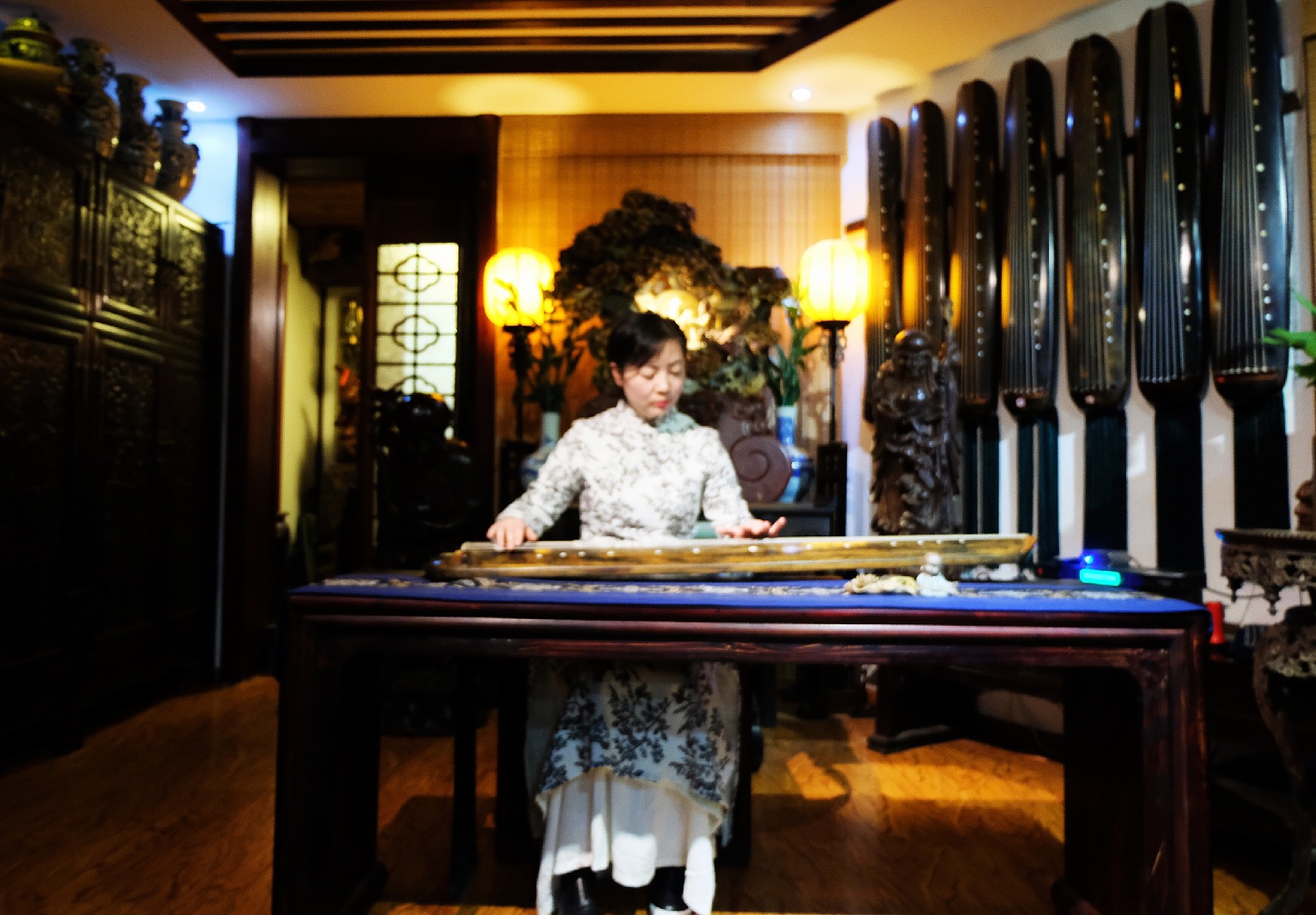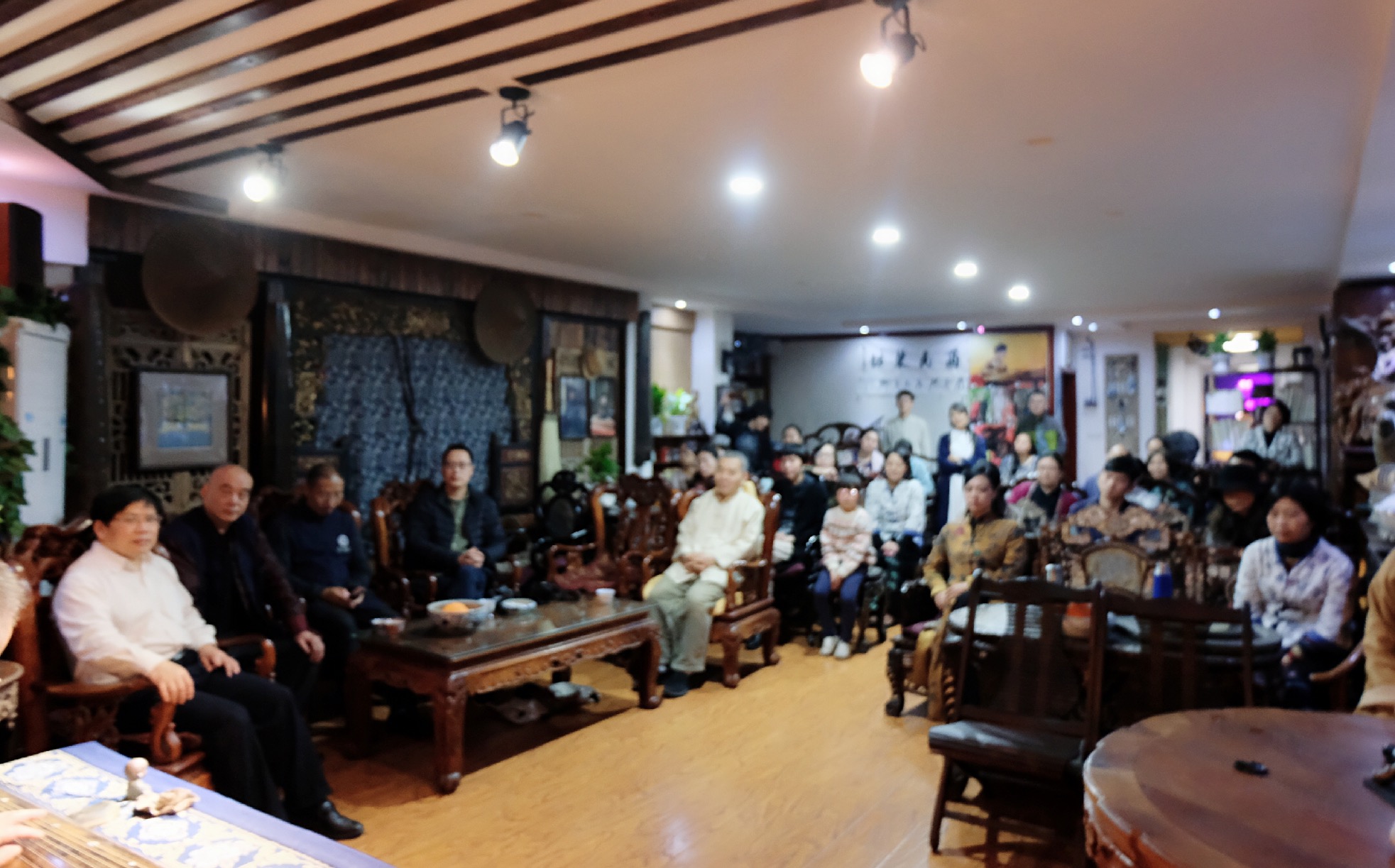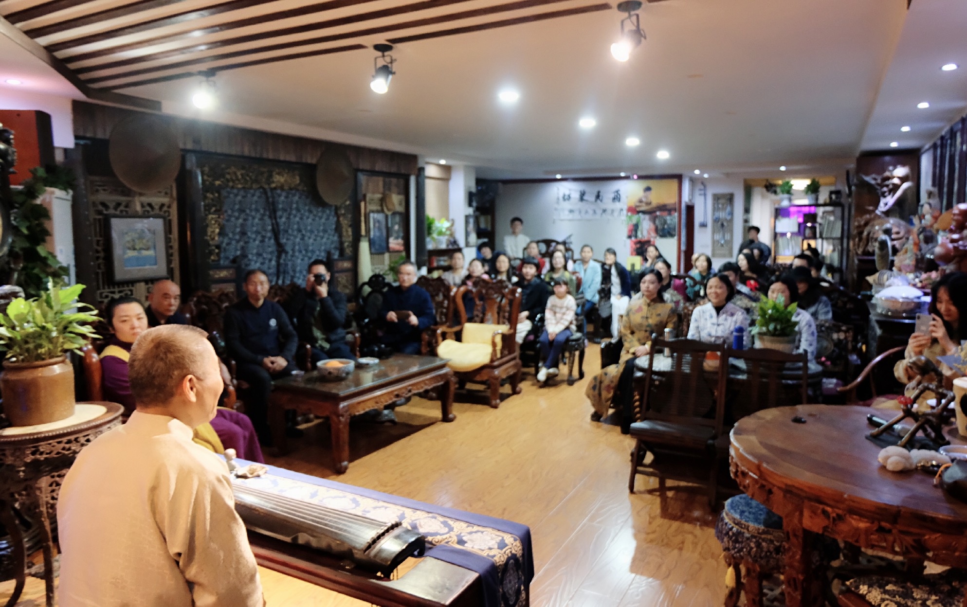 当晚雅集上,裴先生分享了古琴斫制及弦歌等相关话题,并抚琴两首,受到了琴友的热烈欢迎。江西省古琴学会会长海月女士及部分学会成员演绎了梅氏广陵派古琴代表曲目。美妙的琴韵令到场的琴友深深沉醉、流连忘返。
