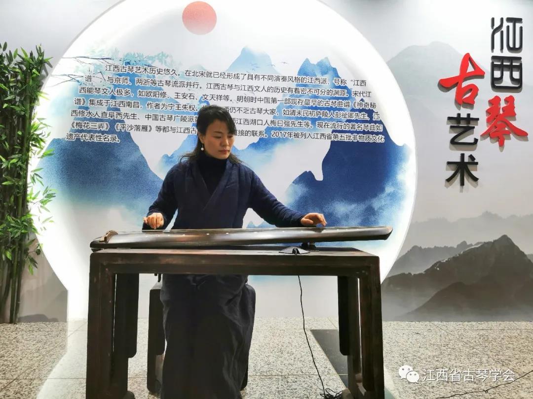 江西古琴艺术历史悠久,在北宋政和以前,就已经形成了具有鲜明演奏风格的江西派,号称“江西谱”,与京师、两浙古琴流派并行。江西古琴与江西文人的历史有着密不可分的渊源,作为“琴棋书画”四艺之首的古琴,在宋代时江西善琴文人极多,如欧阳修、王安石、文天祥等。欧阳修称琴为“有道器”,这正是对“琴以载道”的琴乐思想的最好诠释。明洪熙乙巳年(1425),中国第一部现存最早的古琴曲谱《神奇秘谱》集成于江西南昌,作者为宁王朱权。近代江西仍不乏古琴大家,如民初江西庐陵人彭祉卿先生、江西修水人查阜西先生、广陵派第十一代宗师梅曰强先生(祖籍江西湖口)等。江西省人大常委会党组副书记、副主任朱虹先生曾考证出琴曲《梅花三弄》与江西的深厚渊源,其他著名琴曲如《忆故人》、《平沙落雁》、《普庵咒》等也都与江西有着直接的联系。2016年6月“江西古琴艺术”列入了南昌市级人类非物质文化遗产项目古琴艺术代表性名录,同年12月列入江西省级人类非物质文化遗产项目古琴艺术代表性名录。